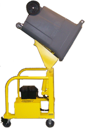 Mobile lifters allow for flexibility in tight quarters or dumping into multiple locations. When not in use, it rolls to store away easily. These units ship standard with indoor/outdoor battery charger and deep cycle 12-volt battery.