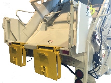 Available as a fork or pan lifter. These double-cylinder units can dump from a 32 gallon can to a 4 cubic yard container. Do you have a non-standard container? We will customize this unit to fit your needs.